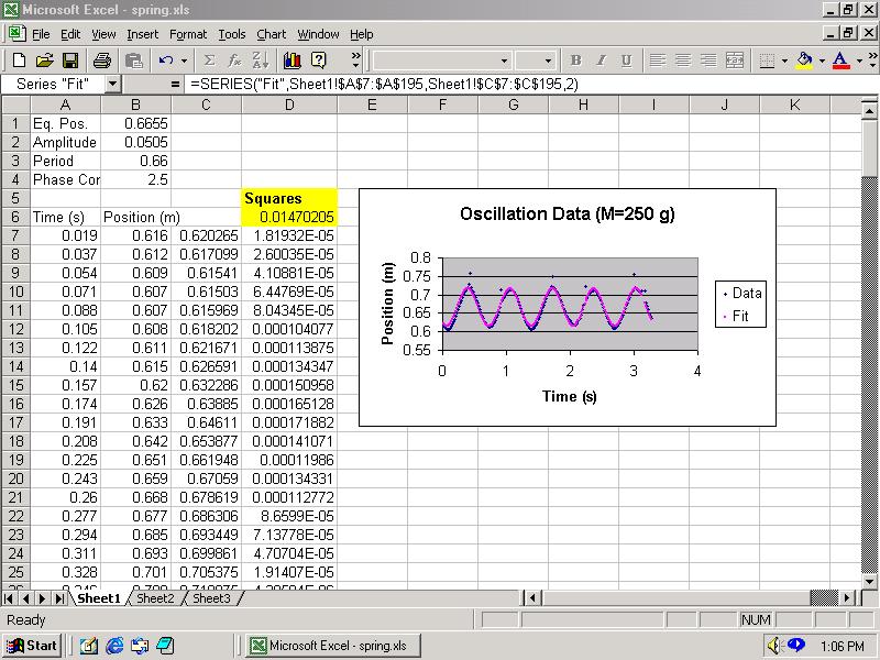 We return to adjusting the parameters, but this time we accept or reject a change based on what it does to the sum of the squares which we want to be as small as possible. Using this criterion for fitting is known as least squares fitting.